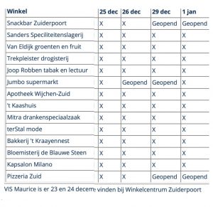 De feestdagen komen er weer aan en de winkels in Winkelcentrum Zuiderpoort zullen aangepaste openingstijden hebben. Klik op het schema hieronder op te zien op welke data er aangepaste openingstijden zijn.