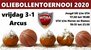Vrijdag 3 januari organiseert Wyba in sporthal Arcus aan de Campuslaan in Wijchen het oliebollentoernooi! Jeugd: U8 tot en met U14 17:30 tot 19:00 U14 tot en met de Heren en Dames 19:15 tot 21:30u. Kom ze aanmoedigen!