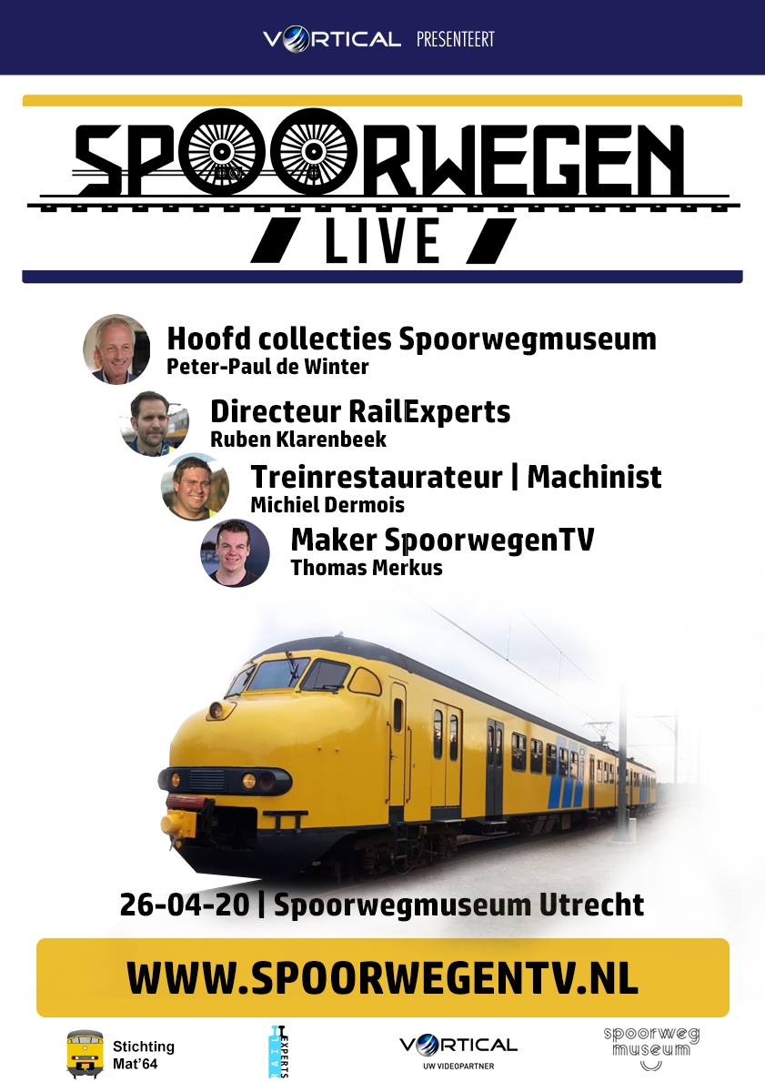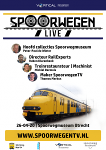 ‘SpoorwegenTV Live’ heet het evenement dat 26 april 2020 in het museum plaats zal vinden. Naast de voorpremière van nieuwe afleveringen zal er een half uur durende film vertoond worden waarin SpoorwegenTV (waaraan ook Wijchenaren werken) terugblikt op het Nederlandse spoor van de afgelopen 4 jaar waarin we uniek, niet eerder gepubliceerd materiaal laten zien. De maker(s) van SpoorwegenTV zijn aanwezig om te vertellen over deze youtube serie. Bezoeker kunnen hierbij vragen stellen om alles te weten te komen over het filmen bij, op en in treinen.