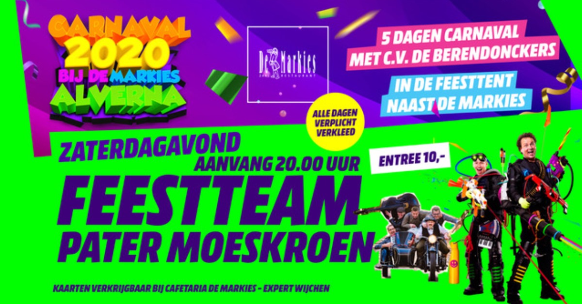Carnaval 2020: 22 februari Feestteam en Pater Moeskroen bij De Markies!