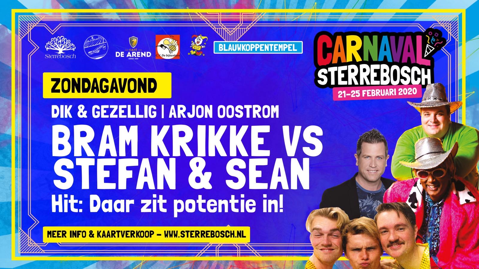 Carnaval 2020: 23 februari ‘Bram Krikke, Stefan en Sean’ in Blauwkoppentempel!