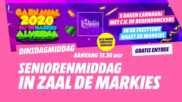 Carnaval 2020: 25 februari ‘Seniorenmiddag’ bij De Markies!