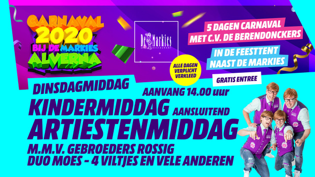 Carnaval 2020: 25 februari ‘Kinder- en Artiestenmiddag’ bij De Markies!