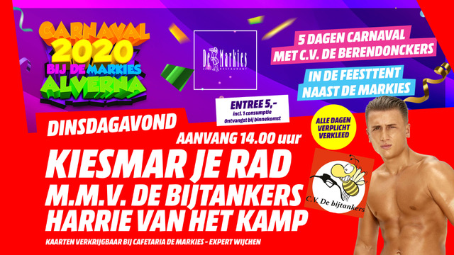 Carnaval 2020: 25 februari ‘Kiesmar je Rad’ bij De Markies!