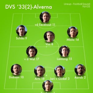 Opstelling: Robert Zaalman; Yassine Aarab, Jari v Ginkel ©, Dennis Arts, Johnny Dobson; Mels Lantang, Cas vd Wal (’69 Derek de Bruijn), Owen Mbila, Danny Vos, Bart Schiks; Arthur vd Eeckhout.