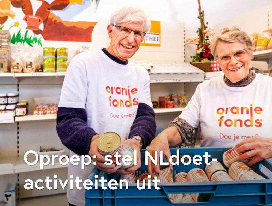 Het Oranjefonds heeft vanwege het coronavirus een verregaande mededeling: "Wij roepen deelnemende organisaties aan NLdoet op hun activiteiten uit te stellen. Vanwege de ontwikkelingen rondom het coronavirus vinden we het niet verantwoord om de geplande activiteiten dit weekend door te laten gaan. “Met pijn in ons hart geven we dit advies. NLdoet is immers een feest van sociale verbinding. Maar er is niks belangrijker dan gezondheid”, zegt waarnemend directeur Marc van Hal.