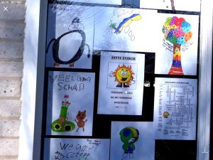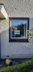 De juffen en de meesters zouden dan met de fiets langs komen om al het werk te bezichtigen. De kinderen hebben massaal aan het verzoek voldaan. De leerkrachten van de bovenbouw (gr. 6-7-8) kregen vele foto’s opgestuurd met het verzoek om langs te komen. Er waren natuurlijk ook kinderen/ouders die het door hadden en zij stuurden een foto met 1 april op de gevel!
