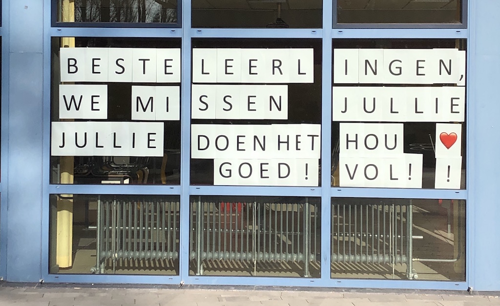 hartverwarmende teksten die de leerkrachten en conciërges op de ruiten van het Maaswaal College Veenseweg hadden geplakt, Oplettende bezoekers van wijchensnieuws.nl wisten te melden dat ook bij Kinderdagpaleis Saltshof (Miriam Peeters Hermsen) en basisschool De Trinoom (Janneke Pastors) de ramen met steunbetuigingen waren beplakt.