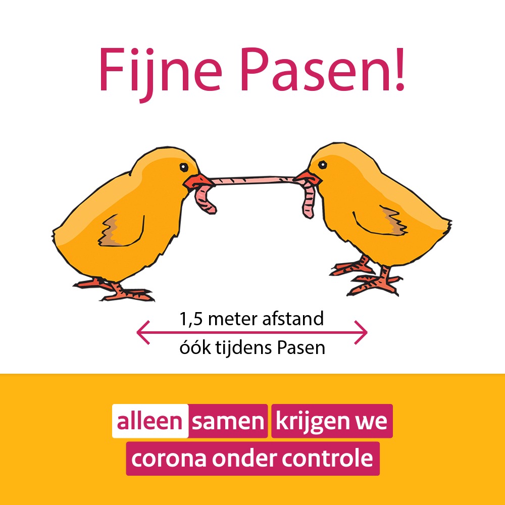 De Veiligheidsregio Gelderland-Zuid roept mensen op Pasen veilig te vieren. Blijf als het kan thuis en hanteer buitenshuis de nodige voorzorgsmaatregelen: "Het is bijna Pasen. Veel mensen gaan naar bouwcentra, woonboulevards en tuincentra. Ga zo veel mogelijk alleen. En help de ondernemers bij de maatregelen en zorg voor 1,5 meter afstand #alleensamen"