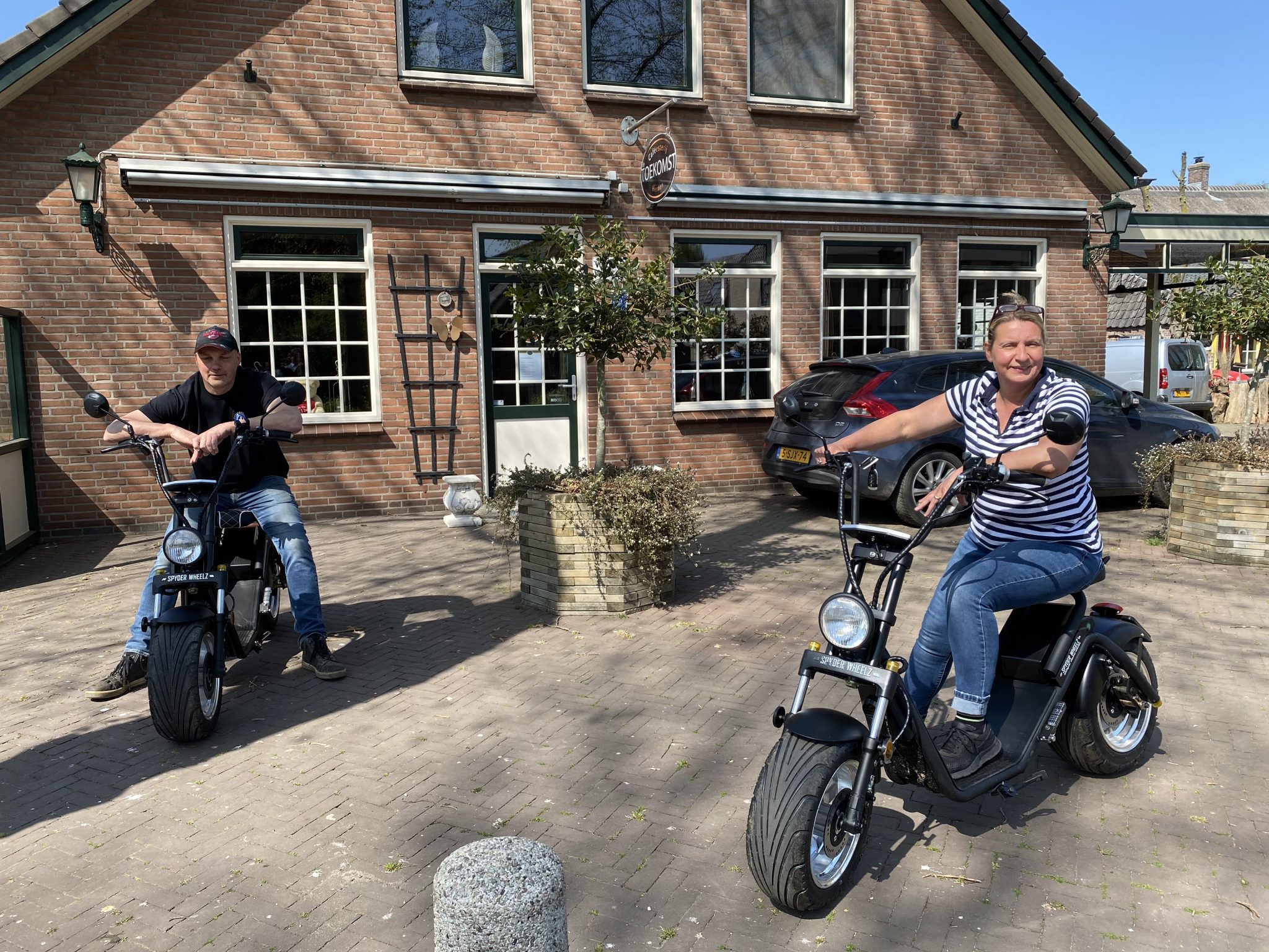 Bij Hill’s Food & Fun in Bergharen aan de Stompendijk 9 kan je nu met 2 mensen al heerlijk 2,5 uur toeren op een E-Chopper! Hesje aan, bandana om en start die motoren maar! Je toert als een echte biker door het Land van Maas en Waal met een E- Chopper. Een unieke, stoere en milieuvriendelijke manier om ons schitterende Land van Maas en Waal te ontdekken! Deze 100% elektrische scooter is zeer gemakkelijk te bedienen en zo geniet je van een uniek, relaxed en groen dagje uit voor iedereen!