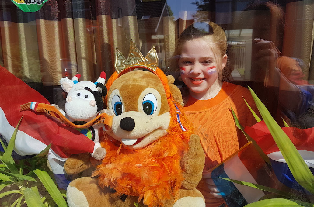 vrolijke oproep en mailde ons: "In dit bijzondere jaar doen we het gewoon zoals we het altijd doen. We versieren de boel om het sfeertje goed te krijgen. En dan... oranje kleren aan en oranje tompouzen en oranje spekkies snoepen.