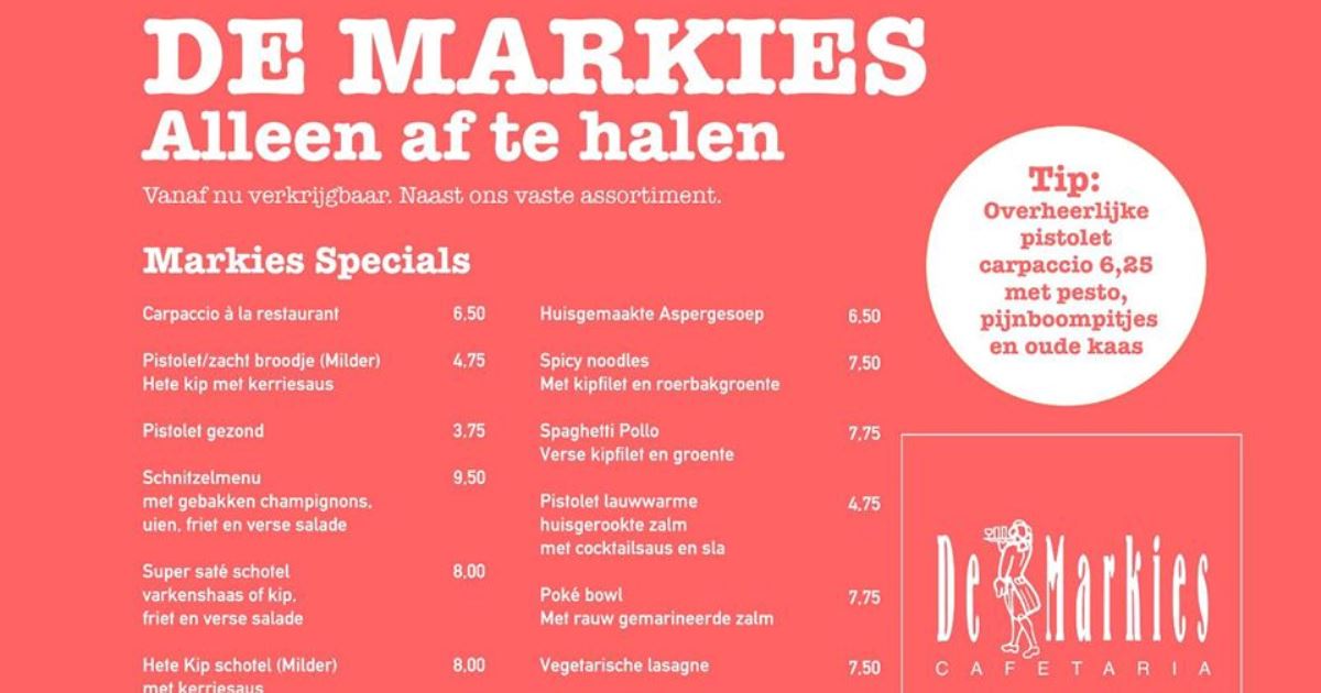 Cafetaria de Markies: ‘Markies Specials bestellen en afhalen!’