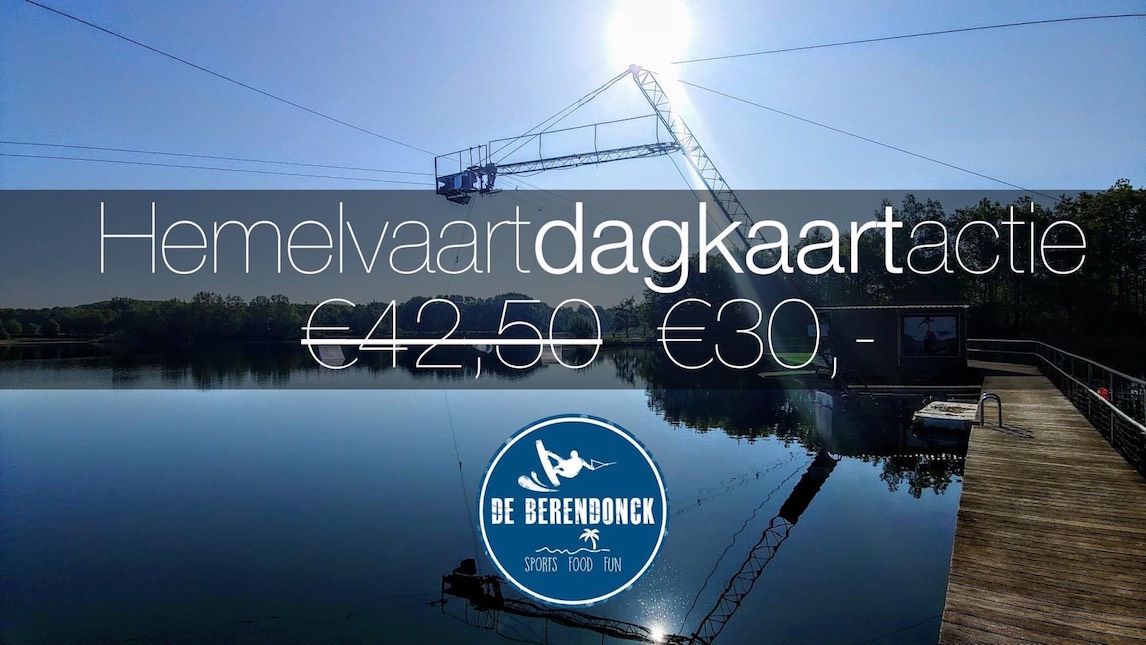 www.deberendonck.nl/reserveren. Er is een limiet aan dagkaarten dus ben er snel bij! Zwemvest en waterski's zijn inclusief, een wakeboard of wetsuit is er eventueel los bij te huren.