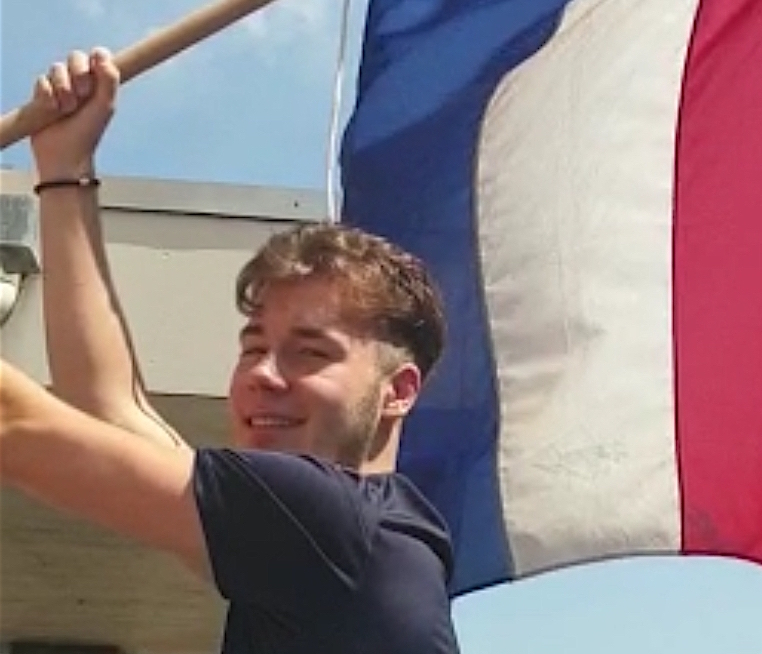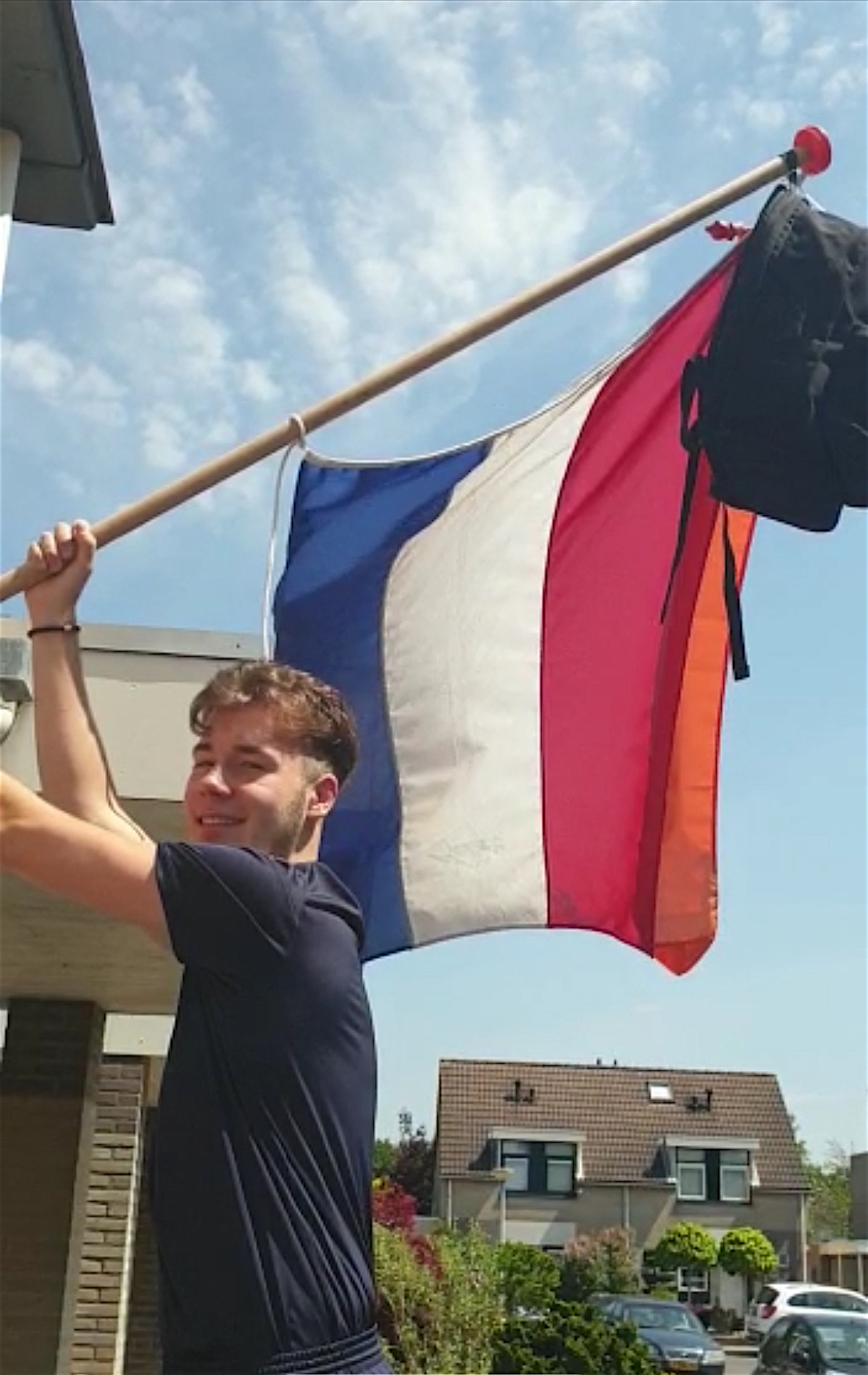 Stijn Dorgelo hangt de vlag uit. Hij is geslaagd voor zijn HAVO-diploma!