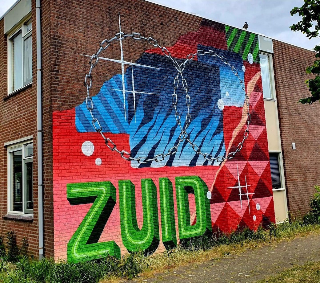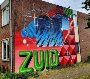 Woningbouwvereniging Talis had kunstenaar Sander Dolstra opdracht gegeven om de blinde saaie muur in de 10e staat Huissteden meer kleur te geven. Dat is prima gelukt Sander!