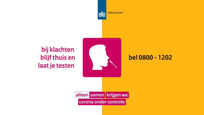 Vanaf maandag 1 juni kun je je laten testen als je klachten hebt die mogelijk wijzen op corona. Je kunt een coronatest laten doen bij de GGD. Dit kan in de teststraat via telefoonnummer: 0800 – 1202. Dit nummer is 7 dagen per week te bereiken van 8.00 tot 20.00 uur. Meer informatie: