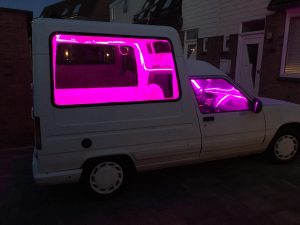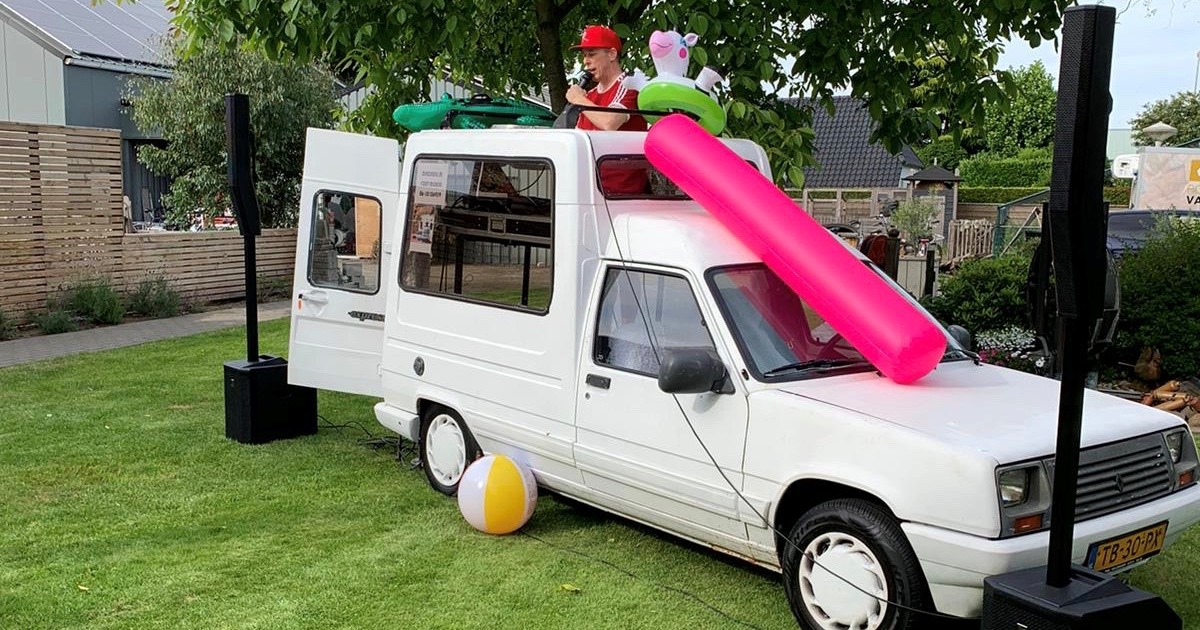 RONNIES FOUTUH SJOW. Er mag buiten gefeest worden (volgens de richtlijnen van het RIVM), in de tuin of op de oprit, met RONNIES FOUTUH mobiel is dit handig te realiseren. Mensen willen toch een klein feestje al is het maar een uurtje even uit alle stress en zorgen met de heerlijke foutuh muziek. Dus voor een tuin-, verjaardags-, examen-, school-, BBQ-, terras- of zomaar een verrassingsfeest, komt DJRonnie voorrijden in zijn FOUTUH MOBIEL, voorzien van ledverlichting en pluche bekleding.