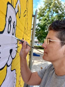 In die Broedplaats heeft zij nu nog steeds haar atelier waar ze het grootste deel van de tijd schildert. En 1 dag in de week runt ze daar met twee andere kunstenaars ook nog de Open ateliers, een creatieve dagbesteding voor mensen die om psychische redenen een steuntje in de rug kunnen gebruiken.