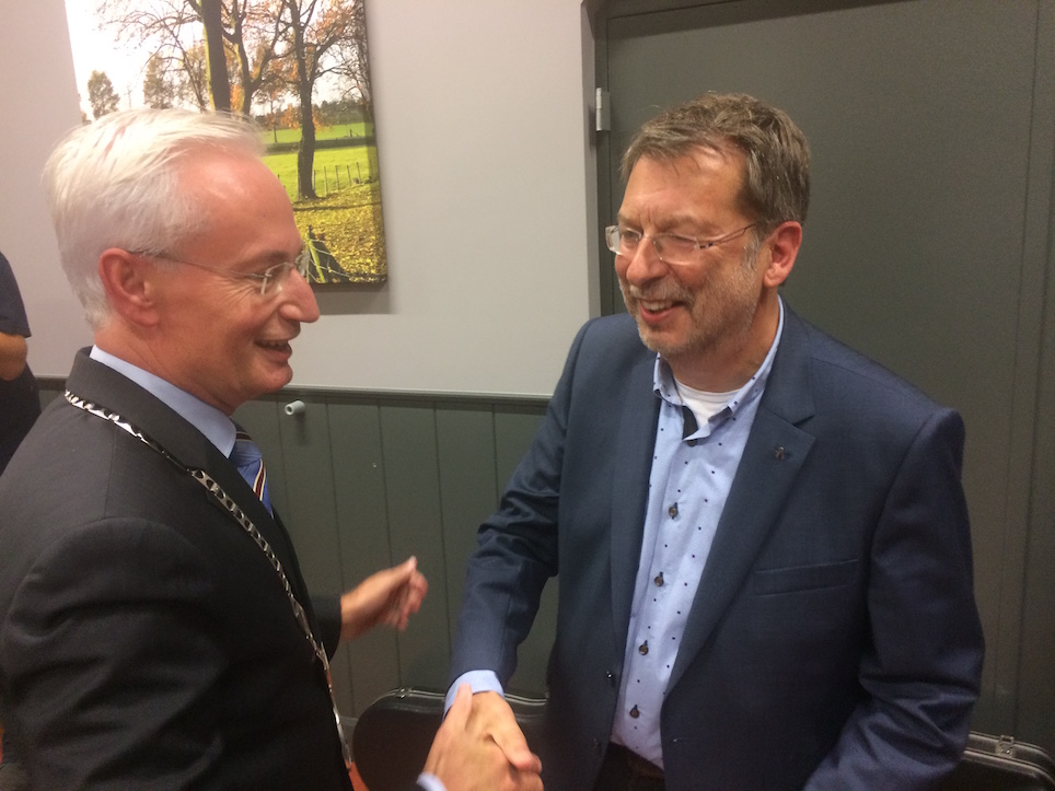 Archieffoto's: in 2016 werd Piet ook al onderscheiden, toen met de Zilveren Draagspeld, overhandigd door toen nog burgemeester Hans Verheijen.