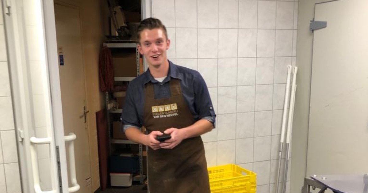 Dit Hollandse slagertje wordt gefeliciteerd met zijn 19e verjaardag door het team van Poelier/Slagerij van den Heuvel! Vergeet de taart niet op je werk!
