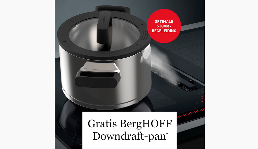 Wanneer u via uw KeukenSpeciaalzaak een stijlvolle en innovatieve Siemens-kookplaat met geïntegreerde afzuiging aanschaft, dan ontvangt u tijdelijk een luxe en innovatieve BergHOFF Downdraft-pan cadeau. Deze designpan oogt niet alleen prachtig, u voegt ook een extra dimensie aan uw kookpassie toe en het geeft nét dat tikkeltje extra aan al uw overheerlijke recepten.