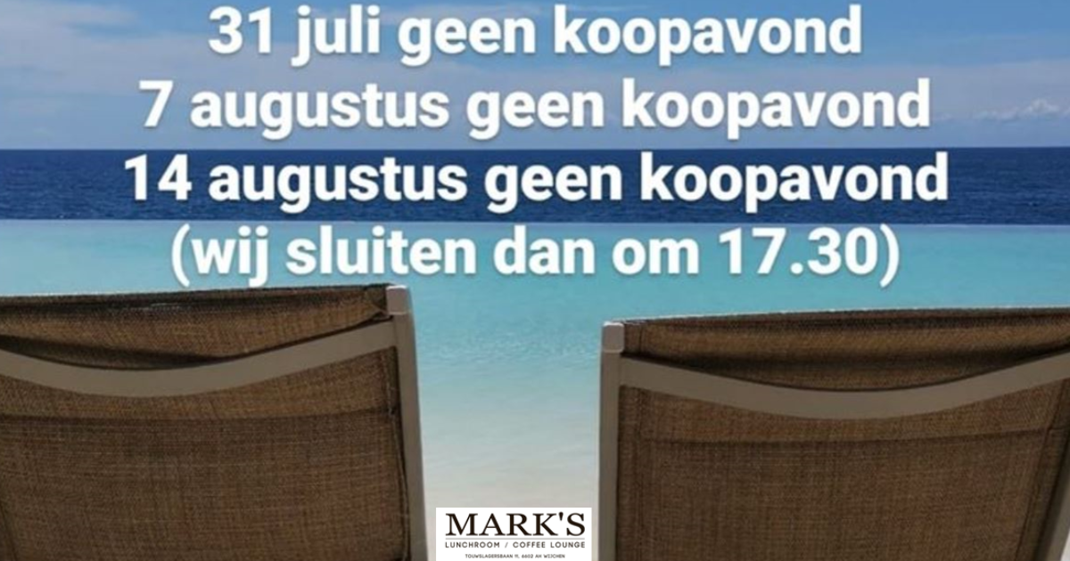 Aangepaste openingstijden Mark’s Lunchroom / Coffee Lounge in vakantieperiode!