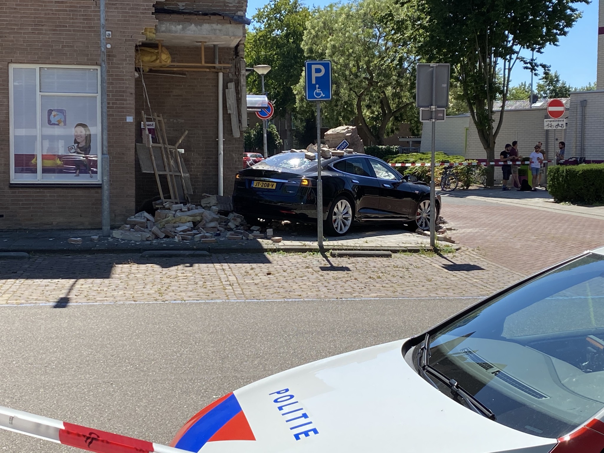 Op vrijdag 31 juli rond 12.30 uur reed een Tesla personenwagen tegen het pand aan de Europlein 17 aan. De vrouw gaf gas i.p.v. te remmen. Ze is naar het ziekenhuis afgevoerd.