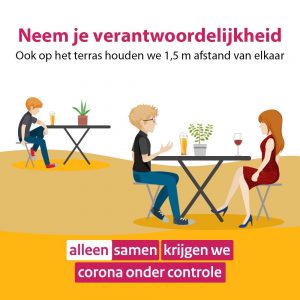 De gemeente Wijchen blijft haar inwoners wijzen op de gevaren van het coronavirus. Ze wil ervoor waken dat we de coronamaatregelen laten verslappen. Zo twitterde ze vandaag: "Weer voor een terrasje! Let wel op de afstand en zoek een rustig plekje. We hebben zelf in de hand hoe we besmettingen met corona voorkomen.
