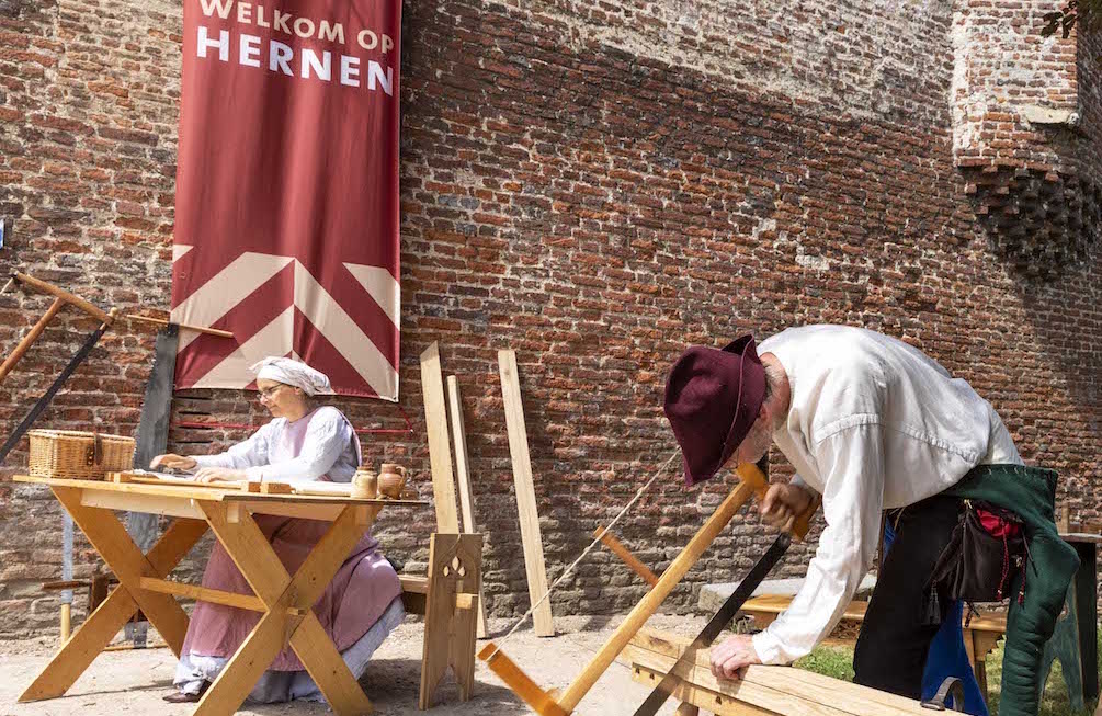 Regelmatig zijn er op kasteel Hernen demonstraties van de aan het kasteel verbonden ambachtslieden.