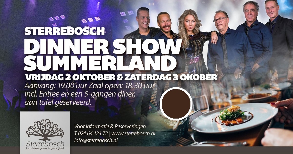 Nieuwe Dinnershows met Summerland 2 en 3 oktober Sterrebosch!