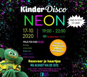 Alvast noteren! Zaterdag 17 oktober is er een kinderdisco (voor 6 t/m 12 jaar) bij de speeltuin aan het St. Jorispad 41 in Wijchen. Klik op de poster voor alle informatie. Ga jij als mooist verkleed?