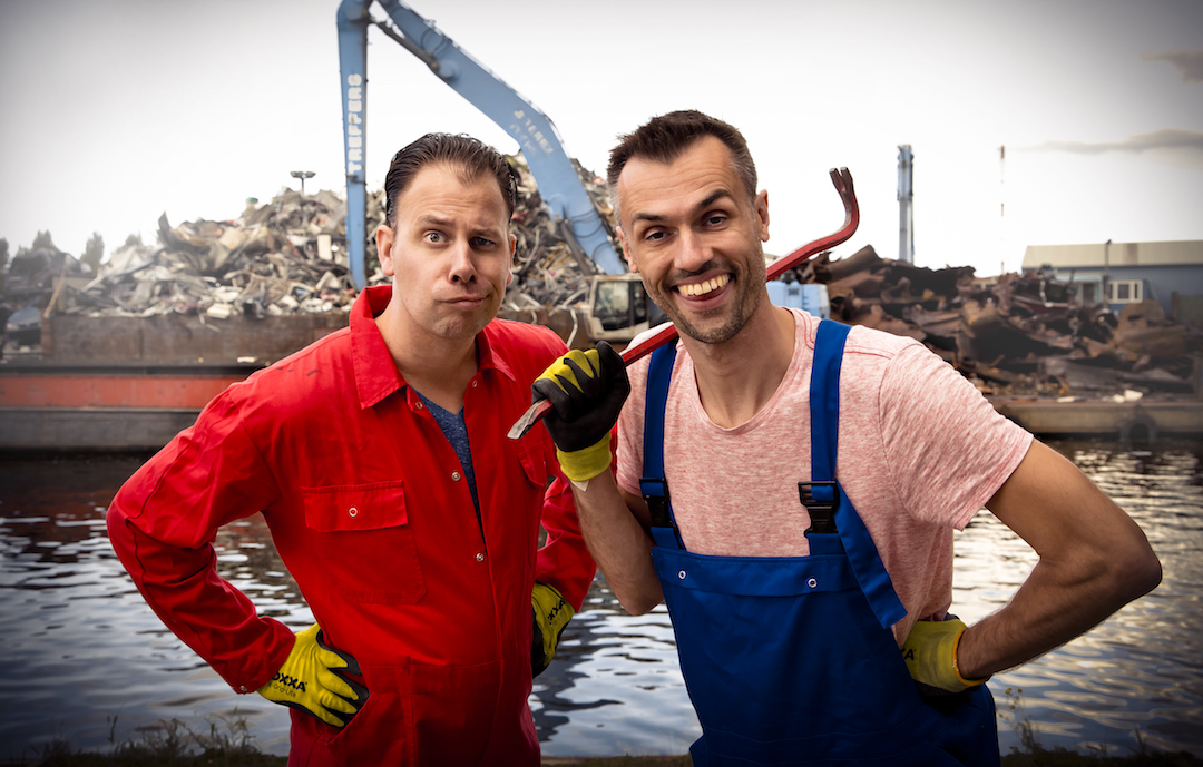 De broertjes Herman en Herman hebben dé oplossing voor al het afval in de wereld: de recyclemachine. Je gooit je troep erin en de machine maakt er prachtige nieuwe spullen van: een leeg eierdoosje, drie bananenschillen, een oude paperclip en voilà, een nieuw skateboard! Maar wat als de machine stuk gaat?
