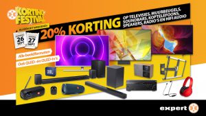 Bij Expert Wijchen is het elke dag korting, en alléén vandaag 27 september: 20% korting op televisies, muurbeugels, soundbars, koptelefoons, speakers, radio's en hifi audio.