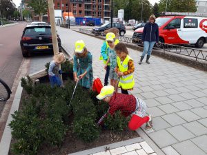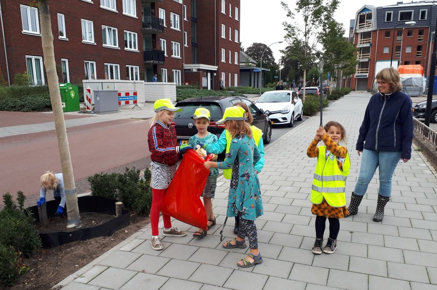 op en helpt zo bij het schoonhouden van de buurt. Goed bezig!