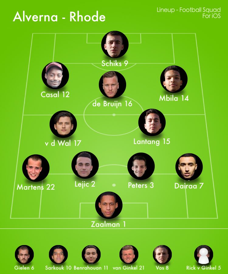 e minuut: Owen Mbila word in het zestienmeter gebied onderuit gehaald en logenstraft de bewering dat je de strafschop dan niet zelf moet nemen (4-0). Hierna is de wedstrijd gelopen en is het echte vuur eruit, Rhode is niet bij machte om er iets aan te doen, en Alverna is tevreden met de 4-0 en de eerste driepunter dit seizoen. Danny Vos en Mo Benrahouane mochten Derek de Bruijn en Owen Mbila aflossen, maar konden geen stempel meer op de wedstrijd drukken.