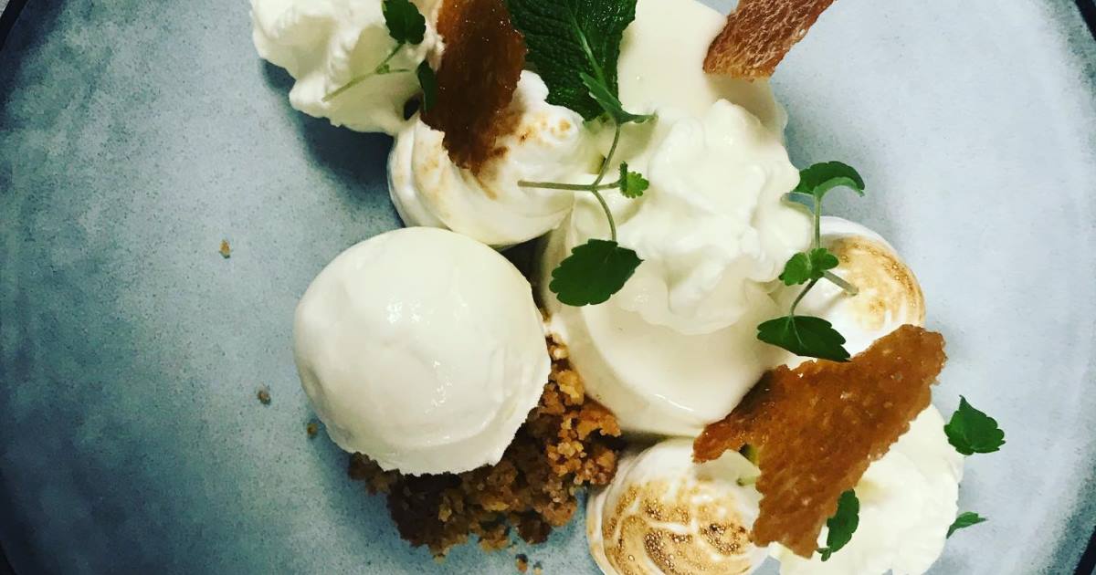 Panna cotta van kokos met meringue, schuim van ..