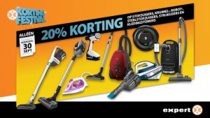 Bij Expert Wijchen is het elke dag korting, en alléén op woensdag 30 september: 20% korting op stofzuigers, kruimel-, robot- en steelstofzuigers, strijkijzers en kledingstomers.