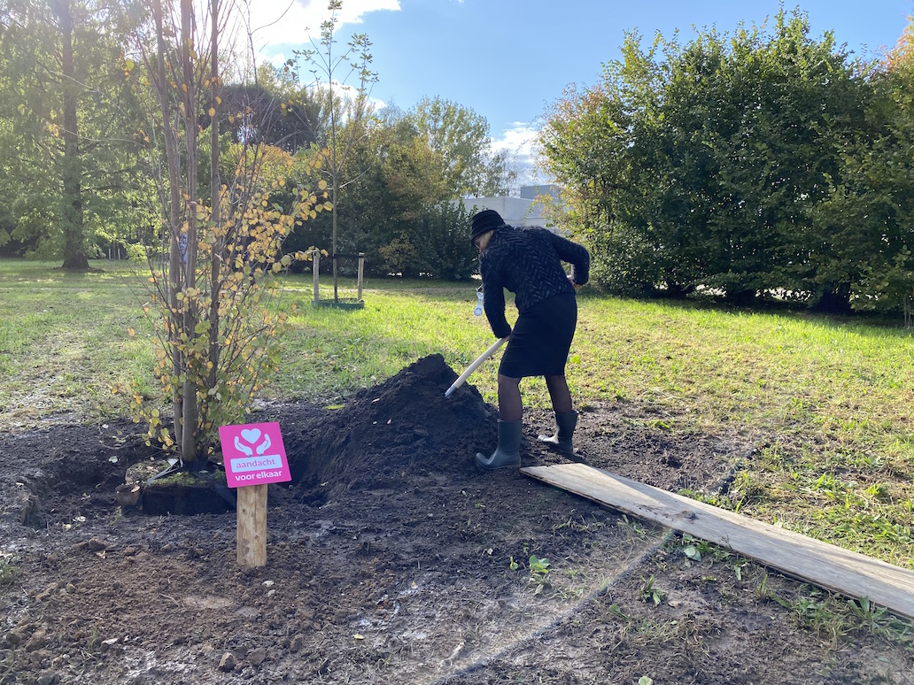 Het planten van de boom, een meerstammige hartjesboom van zo’n 4 meter hoog en vond plaats om 16:00 uur, aan de Meerdreef, ter hoogte van het zwembad.
