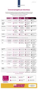 rijksoverheid.nl/routekaart) waaraan men kan aflezen wat te doen en laten. Momenteel bevinden we ons in het een-na-hoogste risiconiveau 'Zeer ernstig' (de uiterste variant is: 'Lockdown'). Minister De Jonge verwacht een vaccin niet voor 2021.