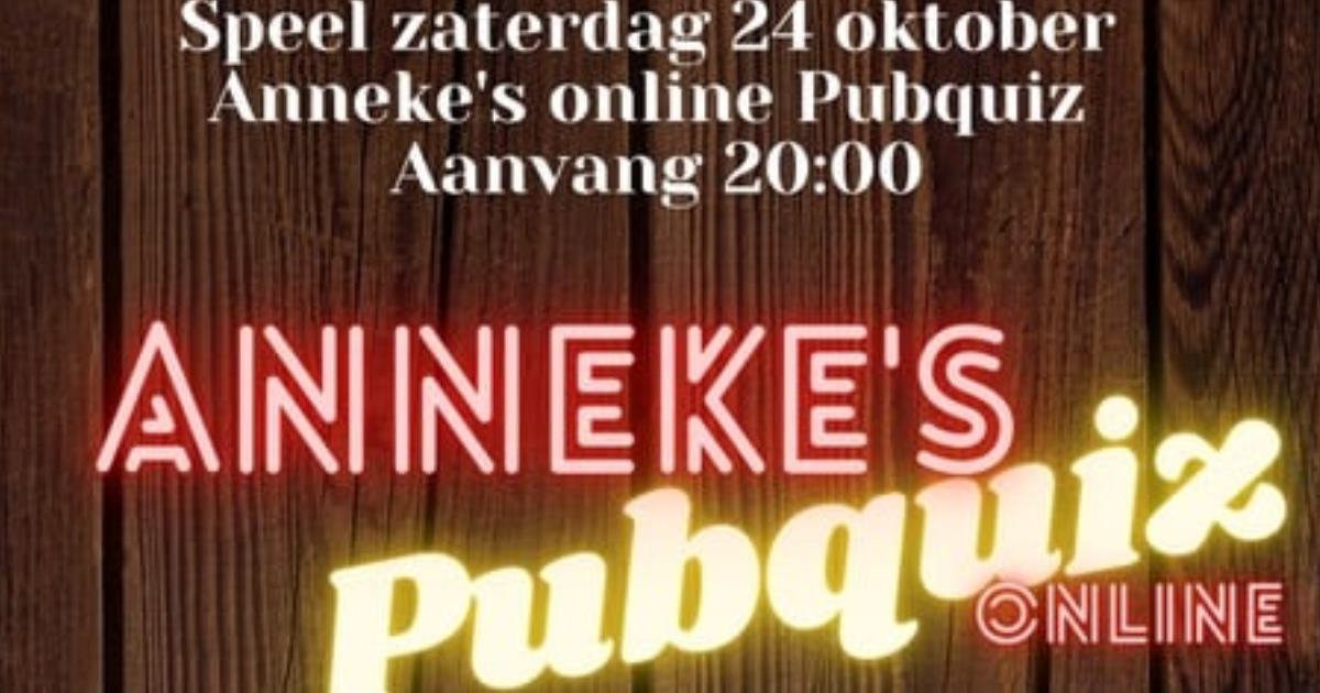 Zaterdag 24 oktober Anneke’s pubquiz online!