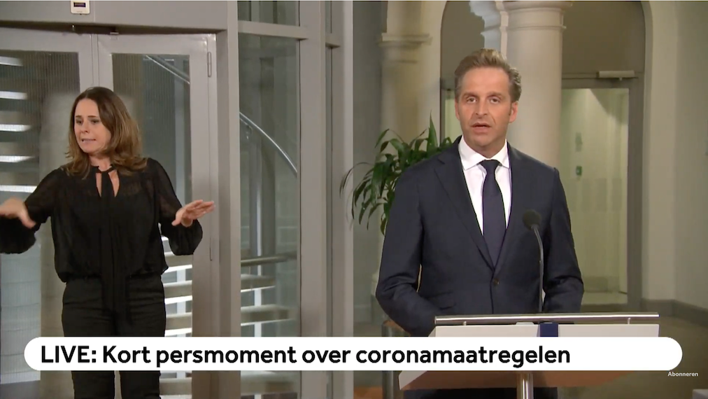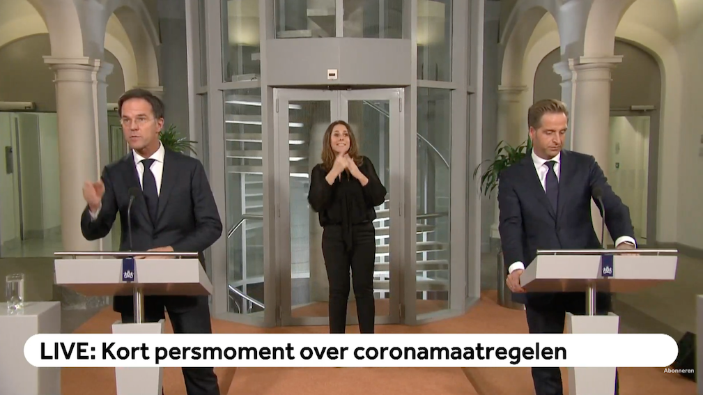 Op het korte persmoment van premier Mark Rutte en minister Hugo de Jonge werden zoals voorspeld geen nieuwe maatregelen gepresenteerd. Wel worden de huidige maatregelen nog zeker tot in december aangehouden en er zal 'strakker' worden gehandhaafd. Sinterklaas en Sint-Maarten moeten in kleine kring gevierd worden, met maximaal drie mensen buiten het eigen gezin. Kerst valt nog niet te voorspellen, zei premier Mark Rutte.