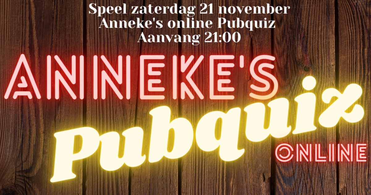 Anneke’s online pubquiz aanstaande zaterdag bij jullie thuis!