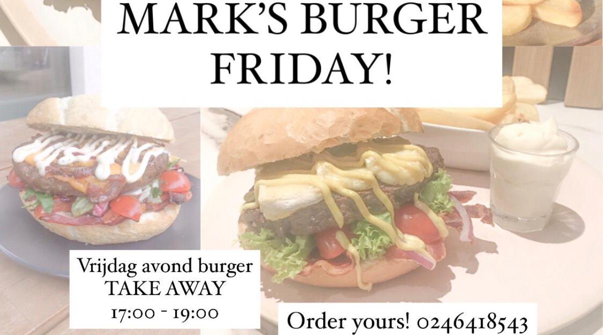 Op veler verzoek hebben wij vanaf aanstaande vrijdag MARK’S BURGER TAKE AWAY!! ..