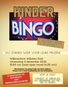 Wijkcentrum Wijchen Zuid is weer open met beperkte tijden. Daarom is er een Kinderbingo op woensdagmiddag 2 december..