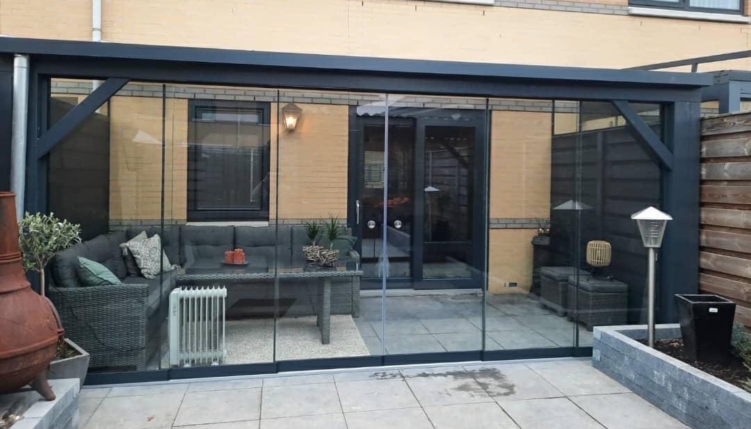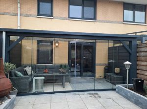 “Onder deze houten veranda in Wijchen hebben we een mooie glazen schuifwand geplaatst. De zijkanten zijn dicht gemaakt met aluminium rabat en de kozijnen met helder glas voor maximale lichtinval”, laten de verandamakers weten. Bekijk het assortiment en de mogelijkheden eens op de prachtige website www.Verandamakers.nl