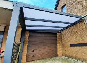 Het Wijchense bedrijf Verandamakers is niet alleen gespecialiseerd in het plaatsen van veranda’s en tuinkamers, maar ook een carport behoort tot de bedrijfsactiviteiten. Eigenaar Wesley Welgraven laat weten: “We hebben onlangs deze carport geplaatst bij een klant die erg veel overlast had van vallende walnoten door overvliegende vogels. Met deze carportconstructie staat de auto staat nu mooi beschut en tevens is er een droge loop naar de garage!”