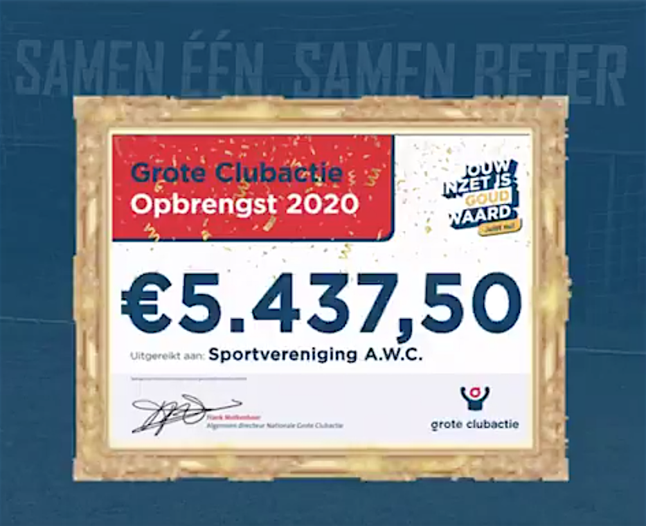 De totale opbrengst van de Grote Clubactie 2020 voor sv AWC is bekend. De club laat weten