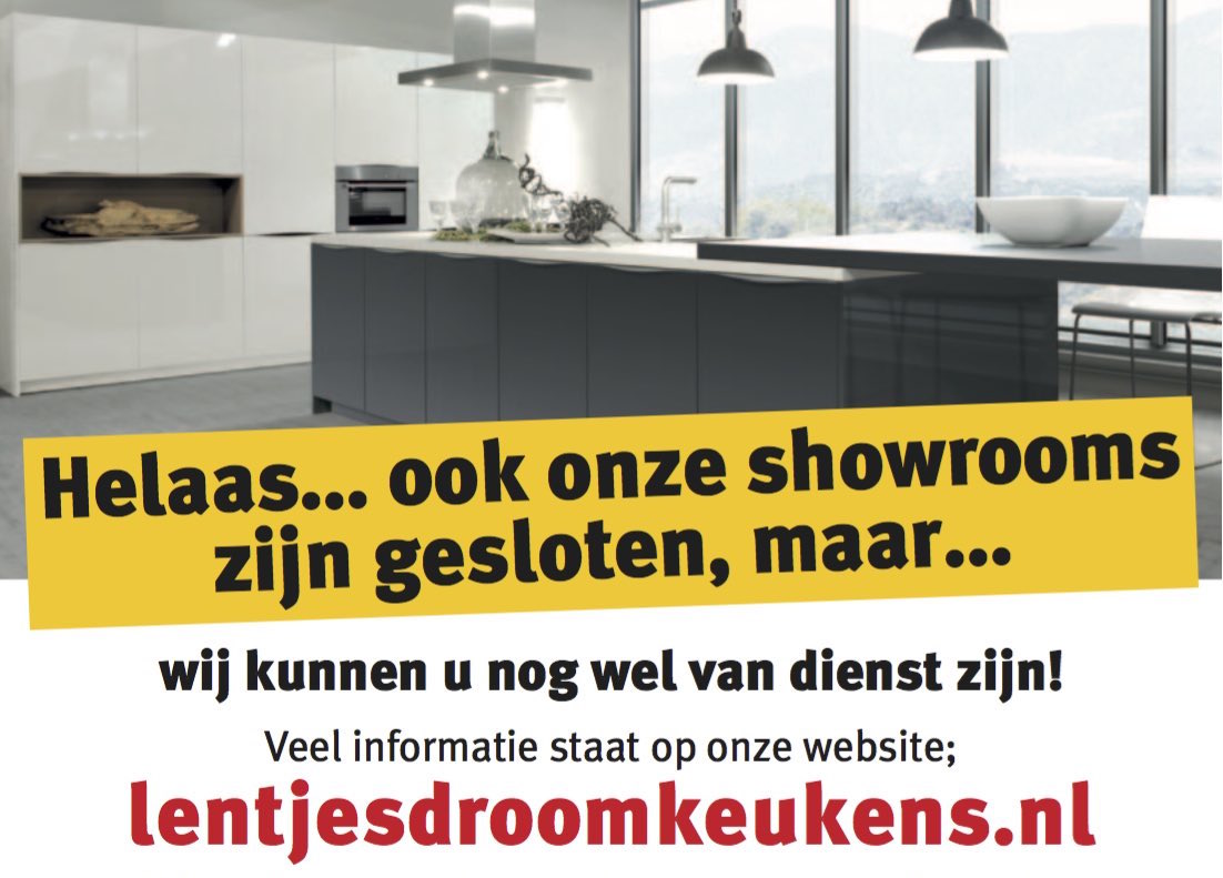 "Helaas... ook onze showrooms zijn gesloten, maar... wij kunnen u nog wel van dienst zijn!"