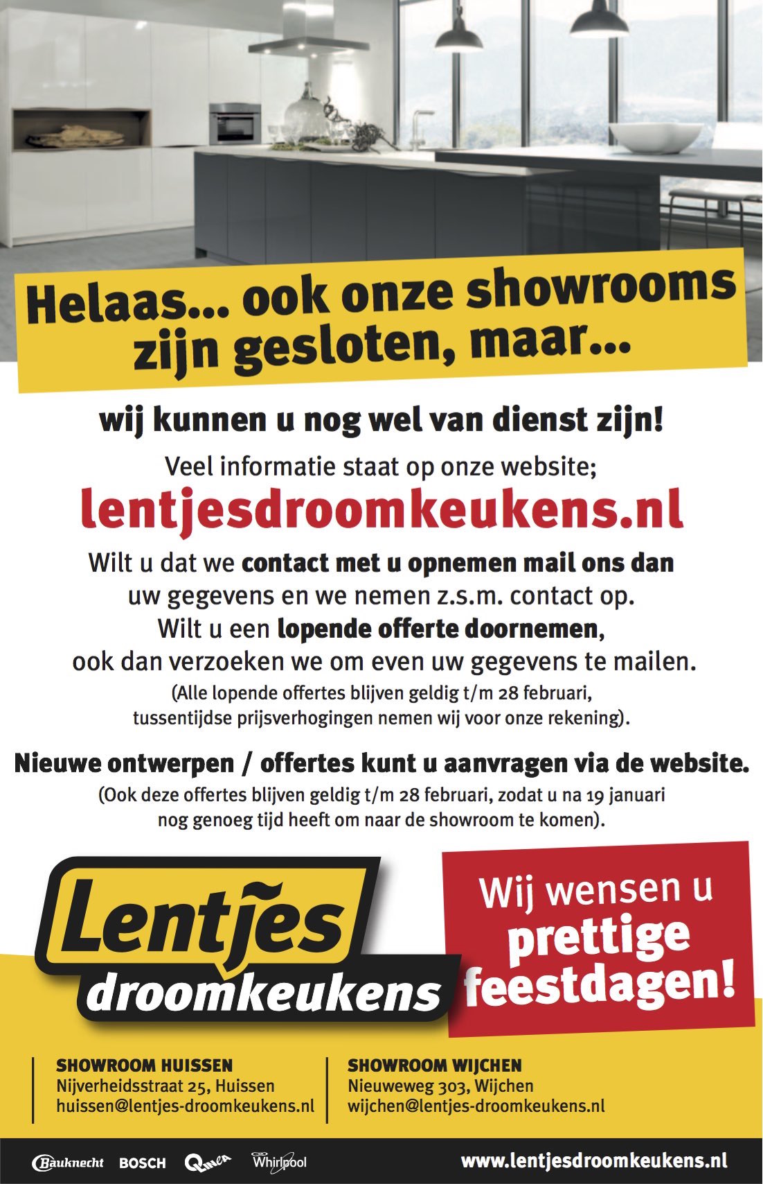 (Ook deze offertes blijven geldig t/m 28 februari, zodat u na 19 januari nog genoeg tijd heeft om naar de showroom te komen)."