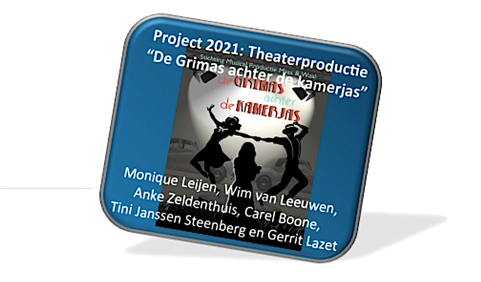 De Grimas achter de Kamerjas. Deze productie is van stichting Musical Productie Maas en Waal, een stichting die zich als doel heeft gesteld om buurtcontacten in Maas en Waal te bevorderen d.m.v. theater.